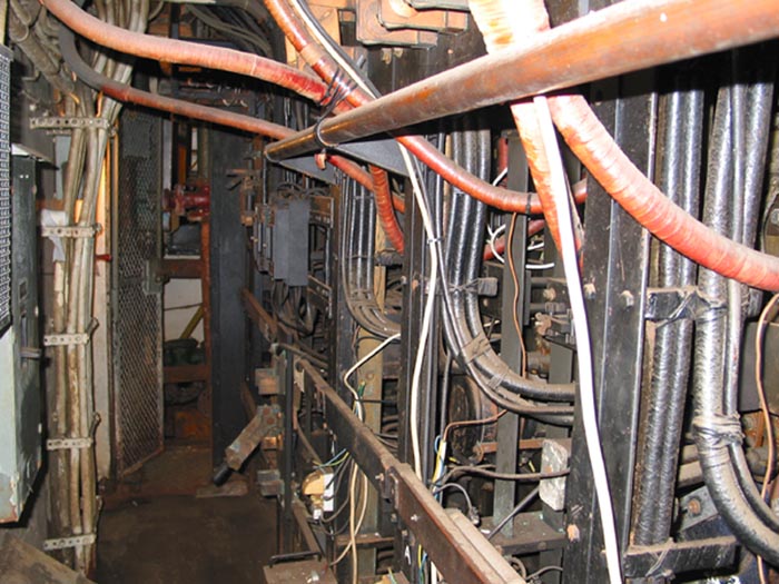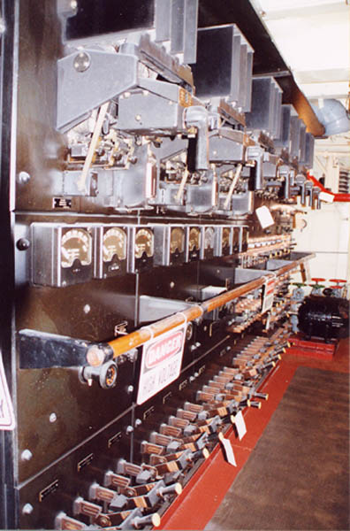 sixteen (16) fused knife switches for feeder circuits. Eleven (11) are active