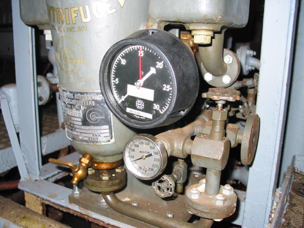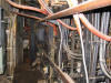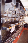 Panel#6 -- Power Feeder Circuits: This panel receives power from the generator bus. Mounted on the panel are three (3) fused knife switches, one for an active 2-wire circuit, and two (2) for spare 2-wire circuits. Other Equipment: Diesel Purifier View behind the main board