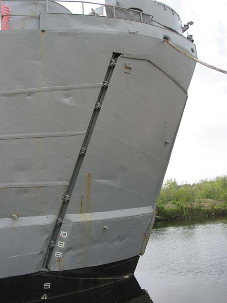bow door is 24 feet high and 14'11" wide. The bow doors are handled by two 3-horsepower bow door drive units, each consisting of