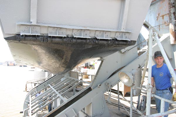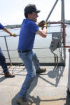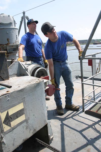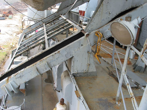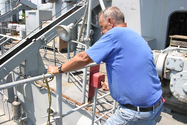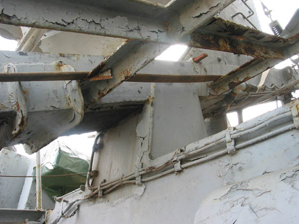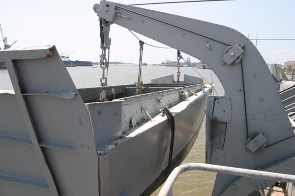 Once the LCVP is in its upper most position a safety pin is used to secure both